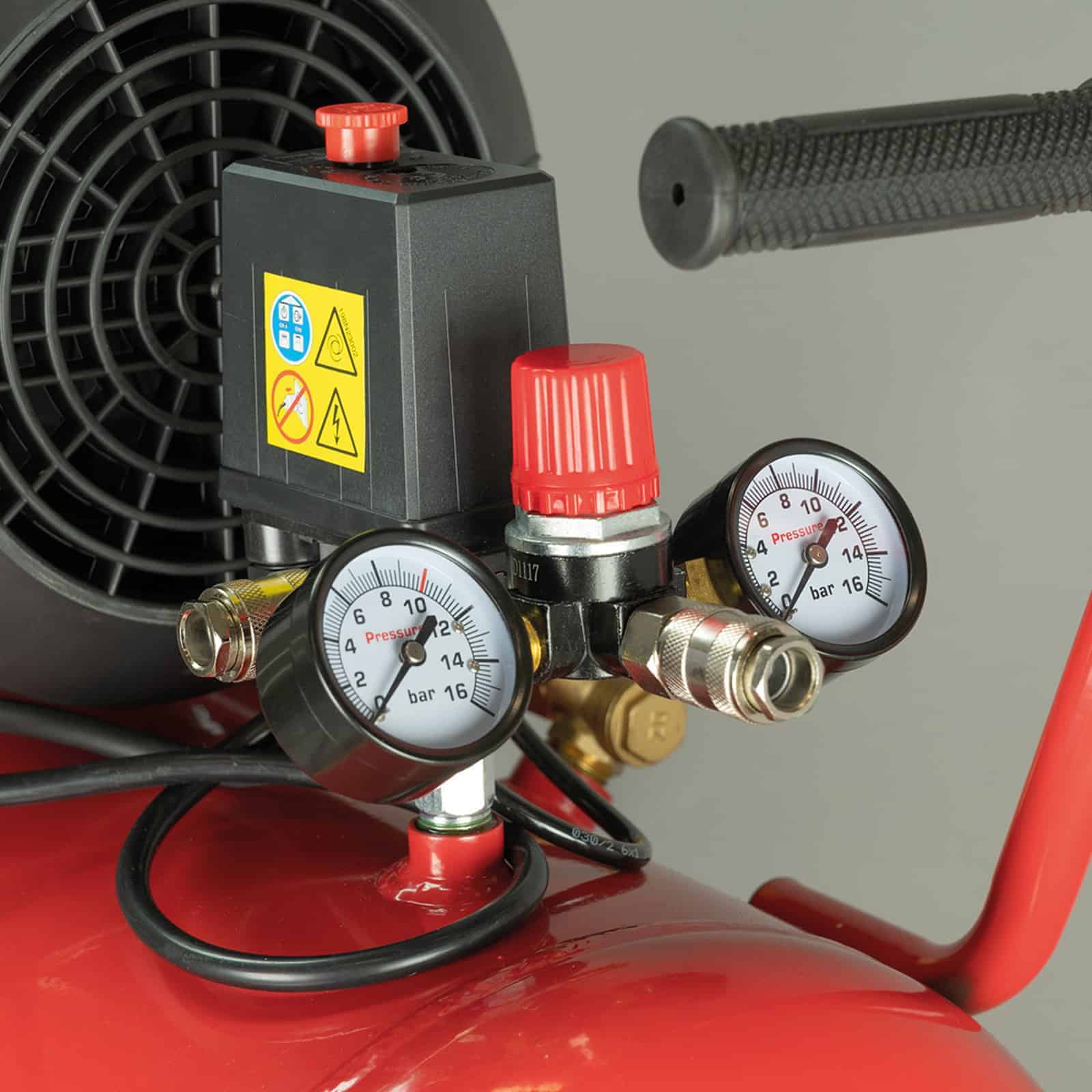 Compressore coassiale bicilindrico a “V” lubrificato, potente e silenzioso, adatto per l’hobbista esigente e l’artigiano. Utilizzabile con una vasta gamma di utensili pneumatici. Dotato di un gruppo pompante da 3 hp con cilindri in ghisa ad alta efficienza. Il serbatoio da 50 litri per una grande riserva d’aria con comoda maniglia intera, doppie ruote e doppio piede fisso garantiscono una maggior stabilità e movimenti agili.